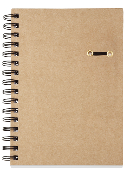 Eco-friendly combo with spiral bound hard cover journals made from 72% recycled paper with colored fabric trim, matching elastic closure, bookmark and pen loop, and 80 ivory lined sheets. Recycled paper ball point pen included. |